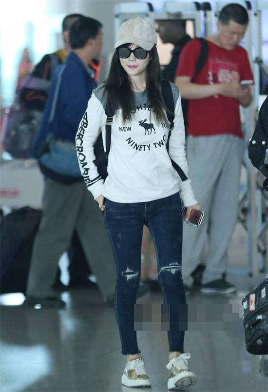 Chiếc áo sơ mi và quần jeans "xé gấu", giày sneaker, túi đeo vai Chloe là những item tạo nên cho Cao Viên Viên vẻ ngoài trẻ trung, cuốn hút.