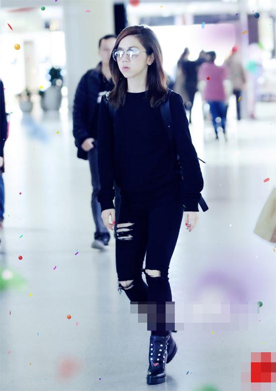 Lý Tiểu Lộ tươi tắn như nữ sinh với áo nỉ họa tiết và quần skinny ra phố tuần qua.