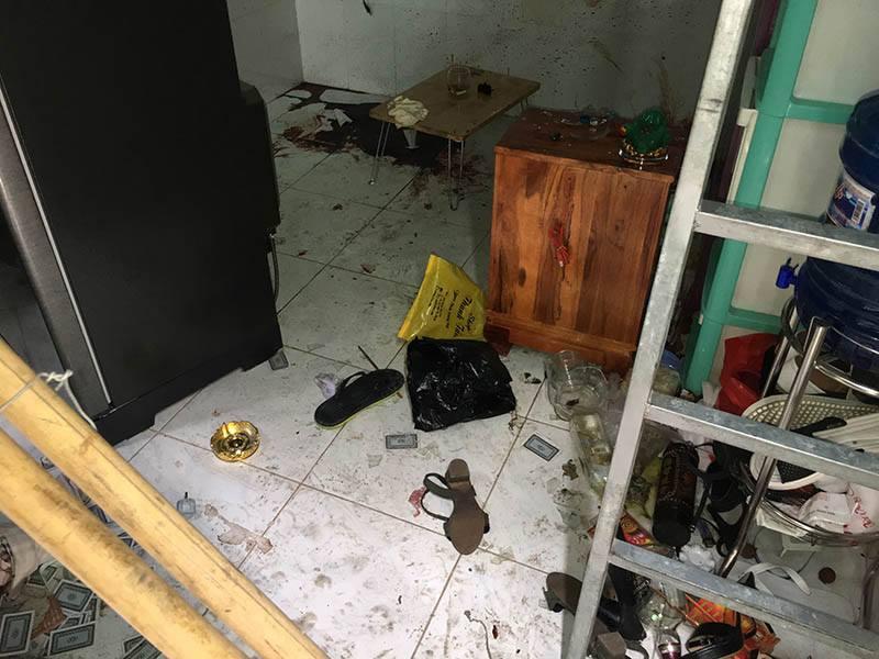 Chị Ch. cho hay, sau khi nổ súng xong, Sơn chạy vào bếp lấy thêm con dao rồi đâm liên tiếp vào người chị và bạn gái cũ. Tiếp đó, Sơn lấy chày (dùng để giã tiêu) đập nhiều phát vào 2 người.