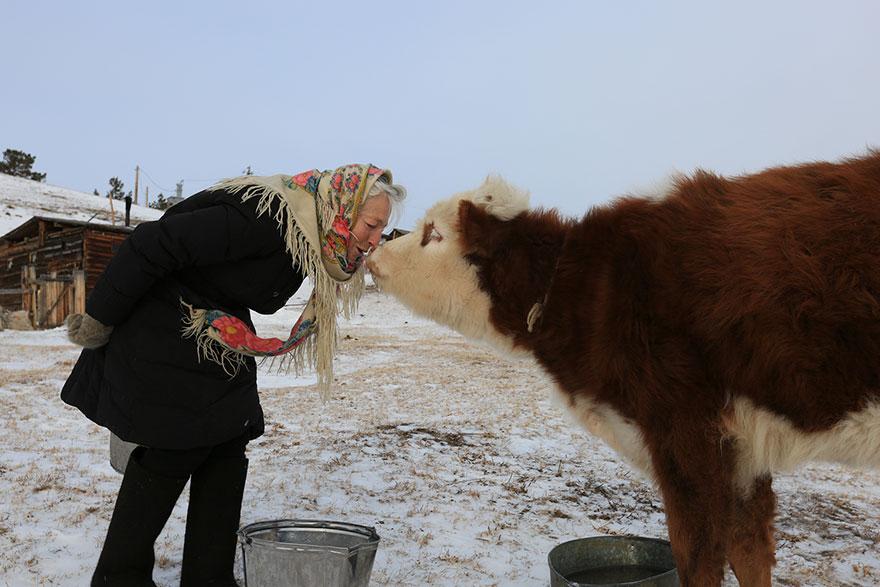 Lyubov cảm thấy hạnh phúc với những con vật nuôi và hài lòng với cuộc sống tại hồ Baikal