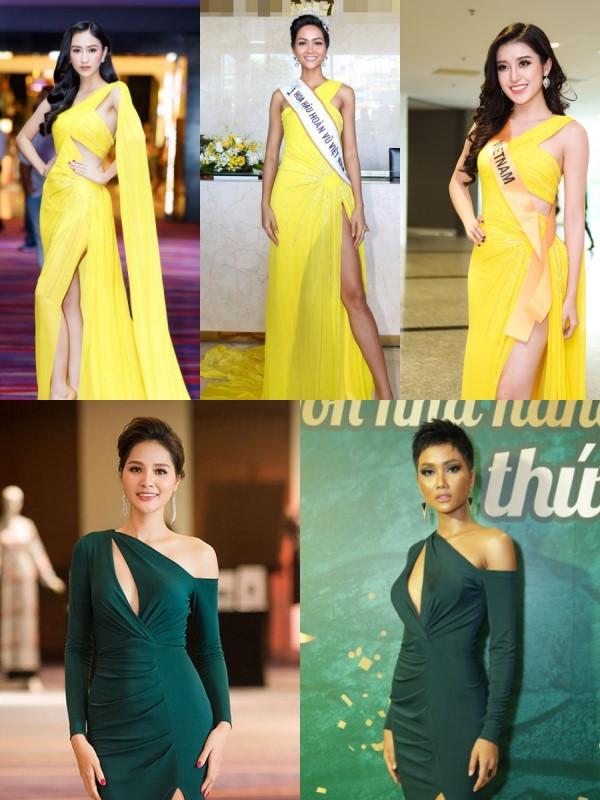 Tuy nhiên, khán giả vẫn dễ dàng phát hiện nhiều người đẹp lại thường xuyên đụng váy lẫn nhau. Trong đó, có cả những mỹ nhân hàng đầu của showbiz Việt như Hoa hậu H'Hen Niê, Kỳ Duyên, Huyền My...