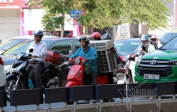 Thợ lắp điều hòa hối hả phục vụ trong 'chảo lửa' Hà Nội. Ảnh: Phạm Hải