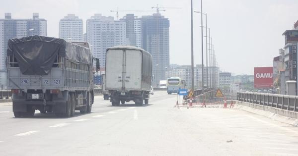 Vị đại diện PMU Thăng Long cũng thông tin, do dầm cầu không thể làm chéo được nên đã tính toán khoảng cách đoạn đường dẫn và nhập làn, vì vậy tuyến đường có đoạn rộng đoạn hẹp. Mặt đường đã được tính toán đủ làn đường theo vạch cong của tuyến và phần kẻ vạch sơn chéo, không cho phép xe đi vào.