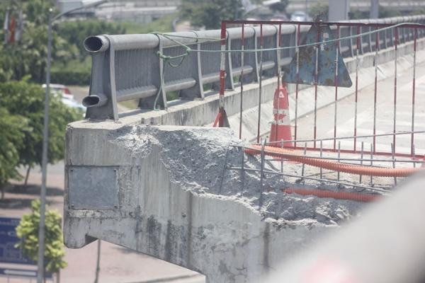 Theo ông Tú, đoạn đường trên cao này được thiết kế hẫng 1 nhịp dầm như hiện tại bởi nó liên quan tới yếu tố hình học của tuyến đường. Thiết kế đoạn mở rộng này dành cho nhánh từ dưới đi lên cầu theo đường cong. Tới đoạn đó thì cắt độ rộng.