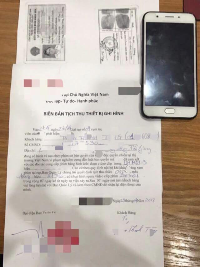 Biên bản xử lý người quay lén phim của Lý Hải ngay tại rạp