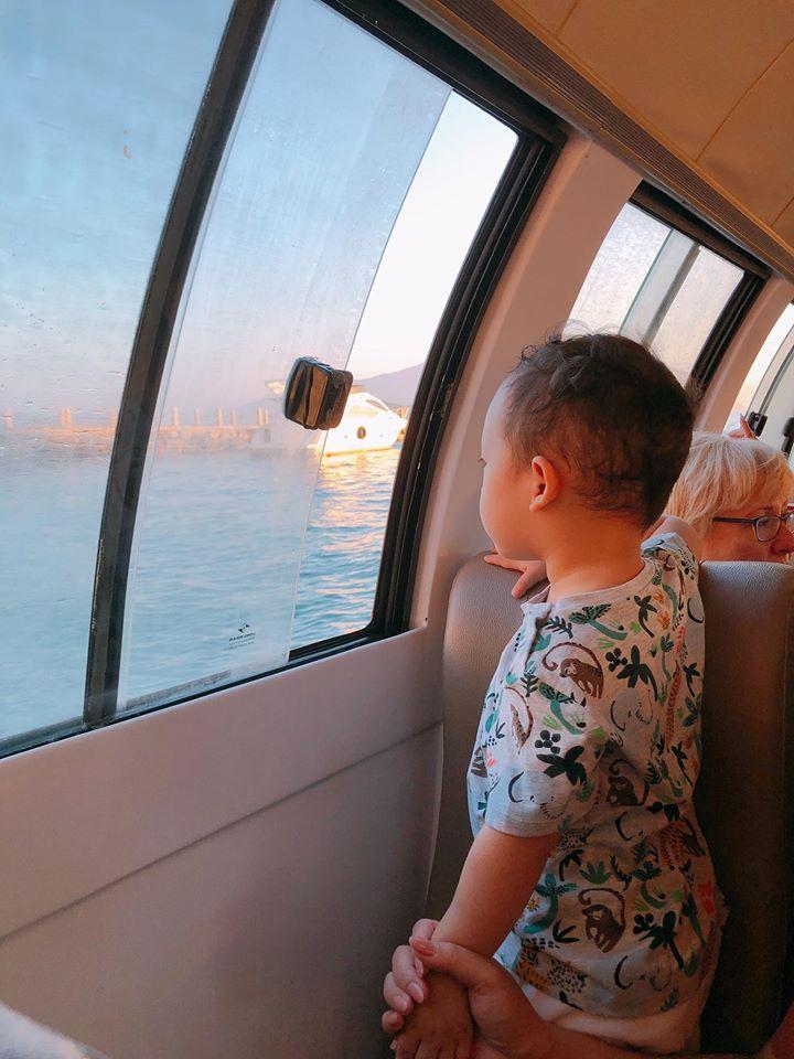 Đính kèm những bật mí về bí quyết nuôi con, Ly Kute chia sẻ khoảnh khắc con trai ngồi trong du thuyền chăm chú hướng mắt nhìn ra biển.
