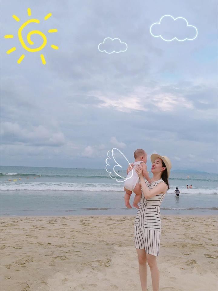 Thời gian gần đây Ly kute rất hiếm khi đăng ảnh bé Khoai Tây. Lần gần nhất cô chia sẻ hình ảnh của con trai là trong kì nghỉ tới Đà Nẵng, tuy nhiên những hình ảnh này chỉ quay sau lưng hoặc không rõ mặt.