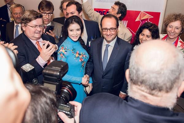 Trong buổi lễ, giữa hàng trăm quan khách, Lý Nhã Kỳ đẹp như một đóa hoa. Cô nổi bật khi bước vào phòng tiếp kiến Tổng thống Francois Hollande cũng như thu hút nhiều ống kính, máy quay tại buổi hội thảo Diễn đàn doang nghiệp Pháp – Việt.
