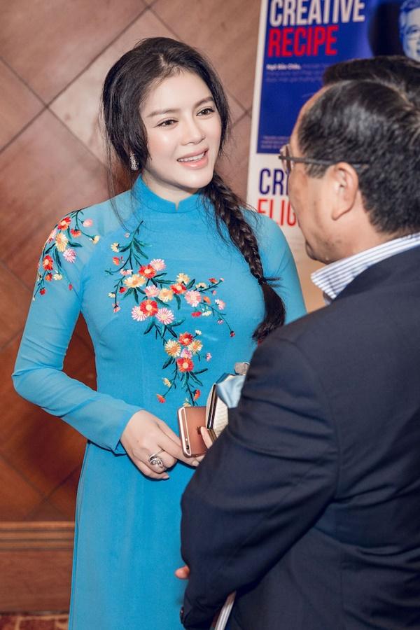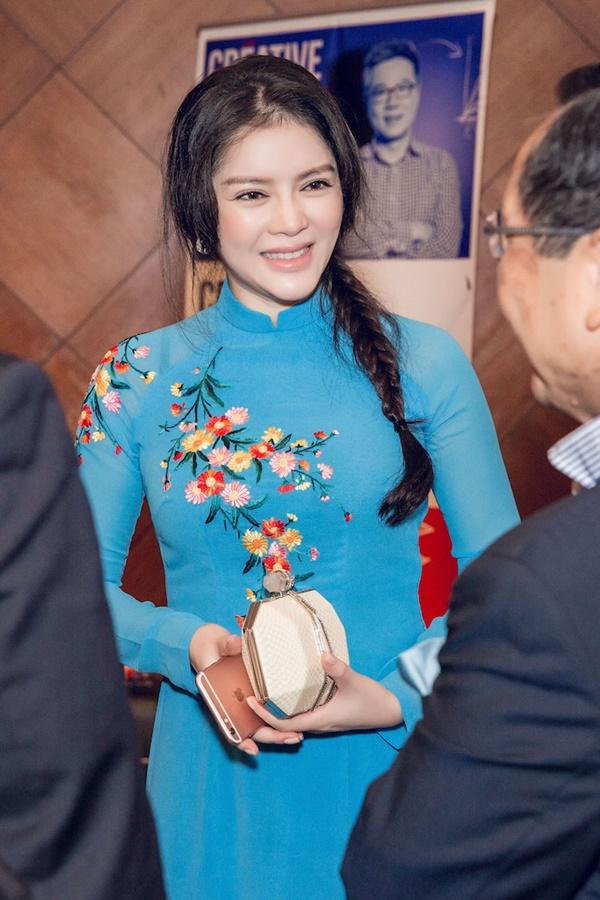 Tại buổi tiếp kiến Tổng thống Pháp Francois Hollande sáng nay, Lý Nhã Kỳ đã chọn bộ áo dài thêu tay màu xanh, tóc đánh rối tự nhiên, tết xương cá. Với phong cách trang điểm nhẹ nhàng, cô mang đến một vẻ đẹp dịu dàng và đậm chất Việt Nam nhưng vẫn vô cùng quý phái.