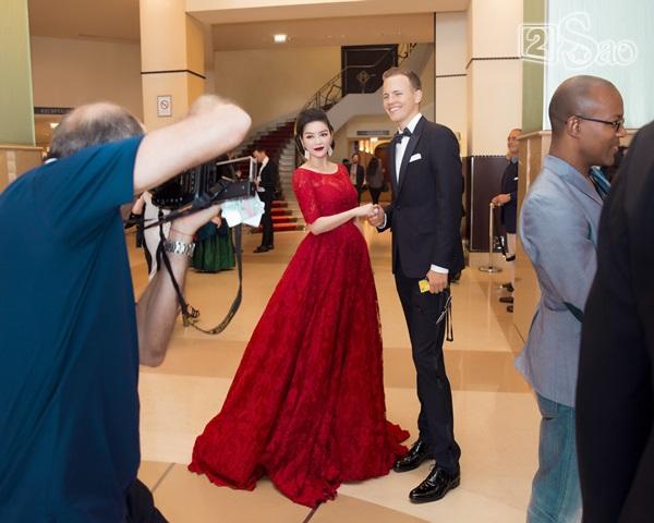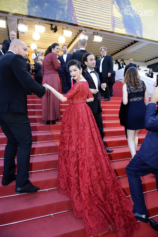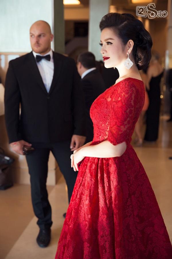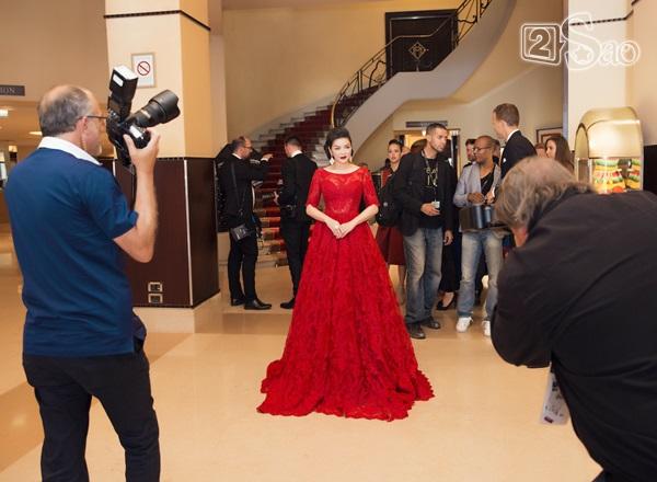 Vẻ sang trọng, đài các của Lý Nhã Kỳ lập tức gây ấn tượng ngay từ khi cô bước xuống sảnh chuẩn bị tới thảm đỏ. Rất nhiều ống kính phóng viên quốc tế đã “săn đón” Lý Nhã Kỳ ngay từ thời khắc này.