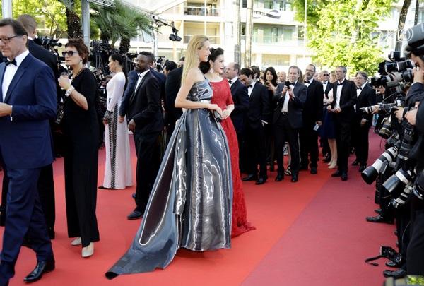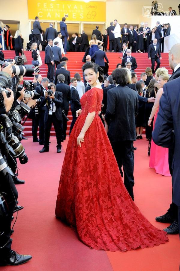 Trên thảm đỏ Cannes tham dự ra mắt bộ phim Julieta của đạo diễn Pedro Almodovar, Lý Nhã Kỳ xuất hiện lộng lẫy với bộ đầm haute couture của thương hiệu Georges Hobeika.