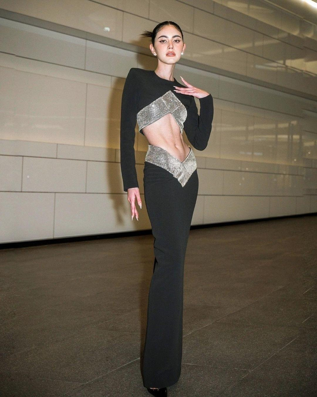 Xuất hiện trong cùng một khung hình, "ma nữ đẹp nhất Thái Lan" tiếp tục trở thành tâm điểm chú ý khi diện trang phục màu sắc phom dáng ngắn khác hẳn với dàn mỹ nhân còn lại.