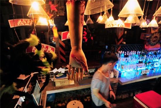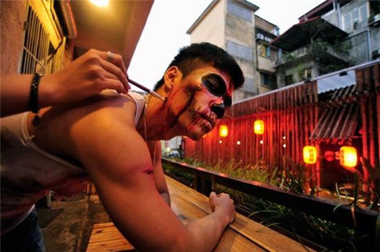 Các hàng quán chuẩn bị nhập vai xác chết cho các màn kịch diễn ra vào buổi tối.