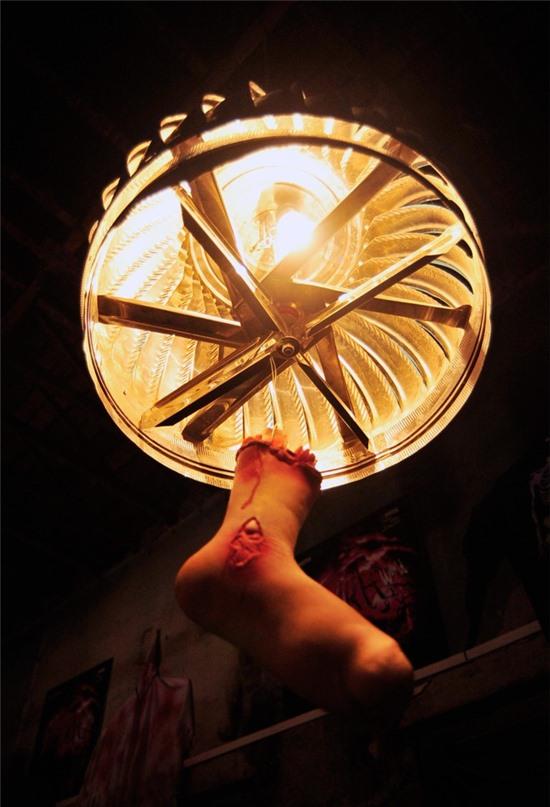 Bàn chân bị chặt đứt lìa làm giả treo lủng lẳng từ trên chụp đèn.