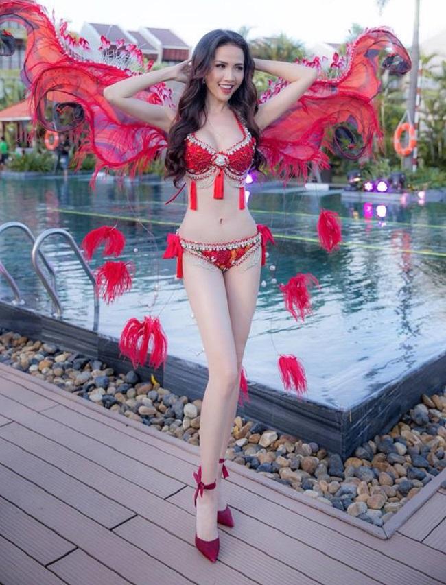 Tuy nhiên đến khi thi Hoa hậu Siêu quốc gia 2017, số đo 3 vòng của cô cán mốc 90-68-100.