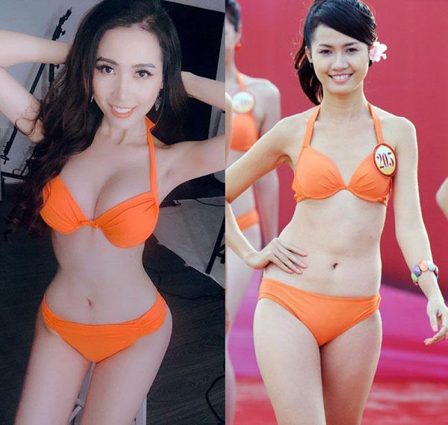Người đẹp Tiền Giang thay đổi nhiều về dáng vóc sau 6 năm thi Hoa hậu Việt Nam (2012). Số đo 3 vòng cũ của cô là: 80-62-87. Như vậy vòng 3 đã tăng thêm 13cm, vòng 1 tăng thêm 10cm.