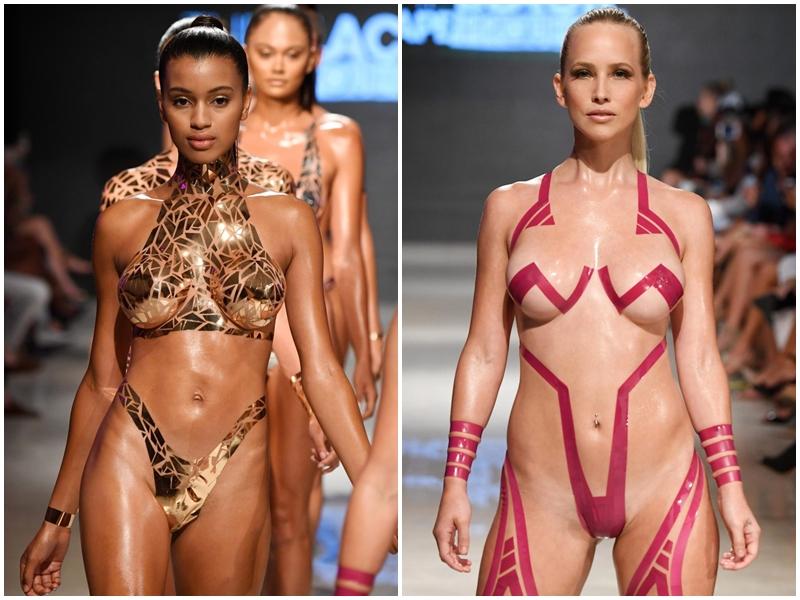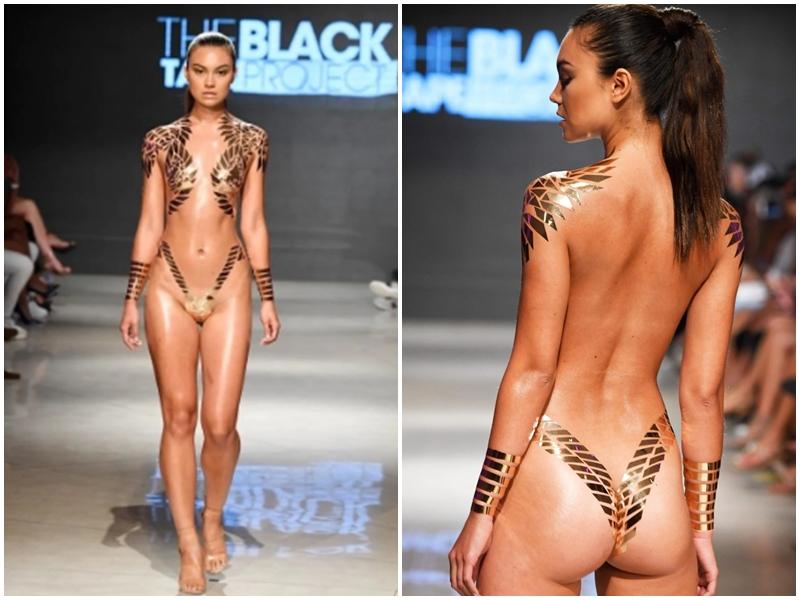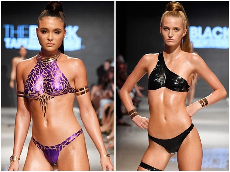 Bạn không nhìn lầm đâu, ý tưởng quấn băng keo lên người mẫu đã trở thành hẳn một bộ sưu tập của nhóm The Black Tape Project tại tuần thời trang đồ bơi Miami (Miami Swim Week).