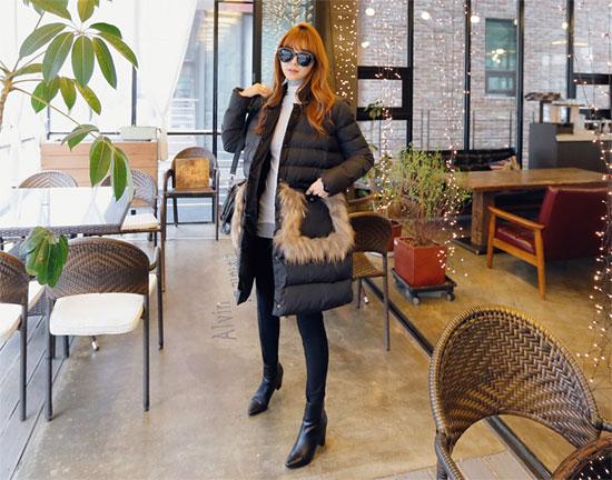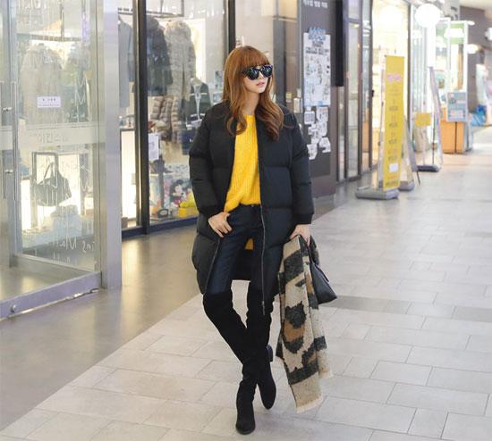 (2Sao) - Áo phao dáng dài, quần skinny chất liệu dày dặn hay boots cao cổ là item được phái đẹp phía Bắc chọn nhiều trong ngày đại hàn.