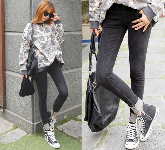 Diện quần skinny thiết kế ôm sát, chất liệu tương đối dày dặn, có độ co giãn tốt trong thời tiết giá lạnh là sự lựa chọn phù hợp. Đặc biệt, áo phao dáng dài kết hợp với quần jean ôm sát, quần skinny là item khá chuẩn. Style này không chỉ giúp bạn giữ ấm mà còn cho bạn diện mạo gọn gàng, thời trang dù ở thời tiết lạnh thấu xương.