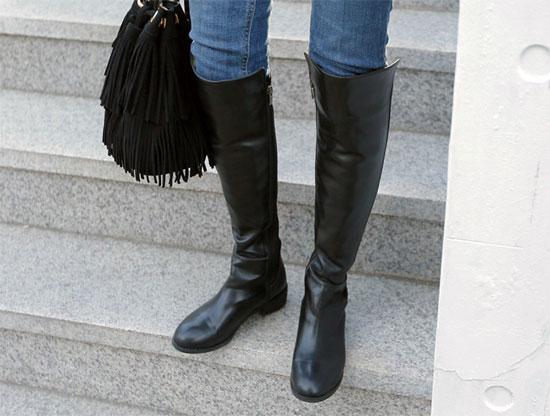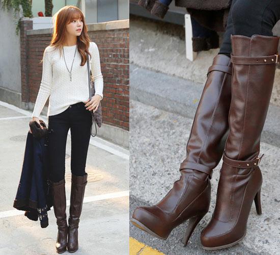 Một trong những món đồ không thể bỏ qua trong thời tiết lạnh giá là đôi boots cao cổ. Dáng boots cao cổ tuy hơi kén người dùng bởi nó chỉ thật sự đẹp với những bạn gái có chiều cao tương đối. Tuy nhiên cùng với áo phao, quần skinny thì đây là item lý tưởng giúp bạn giữ ấm. Trong những ngày lạnh có mưa bạn không nên diện boots da lộn, đôi boots chất liệu da bóng sẽ giúp bạn dễ dàng lau chùi và làm sạch hơn.
