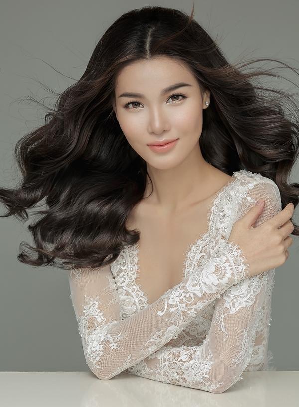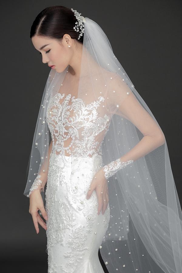 Vương miện lóng lánh đá quý được phối hợp cùng kiểu trang điểm nhẹ nhàng, giúp Kỳ Hân trở nên xinh tươi hơn qua từng khung hình. Đi theo đó là các mẫu váy cưới được thiết kế trên chất liệu ren đối xứng – chất liệu hot nhất mùa cưới năm nay.