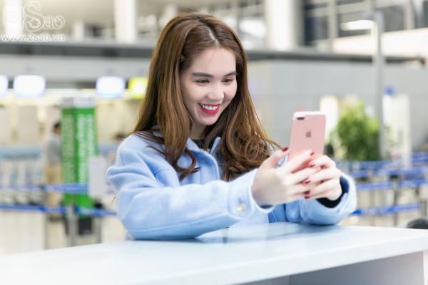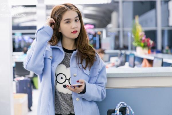 Xuất hiện tại sân bay từ sáng sớm, Ngọc Trinh diện một phong cách vô cùng trẻ trung đơn giản. Chân dài
