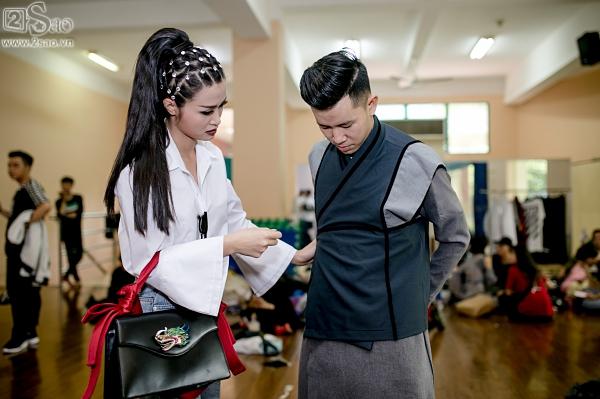 Vừa tới hậu trường, Đông Nhi đã gặp học trò dặn dò kỹ lưỡng trước giờ ghi hình.