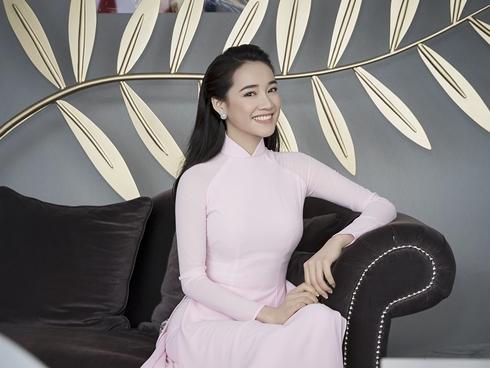 Nhã Phương dịu dàng trong bộ trang phục nhã nhặn và tinh tế.