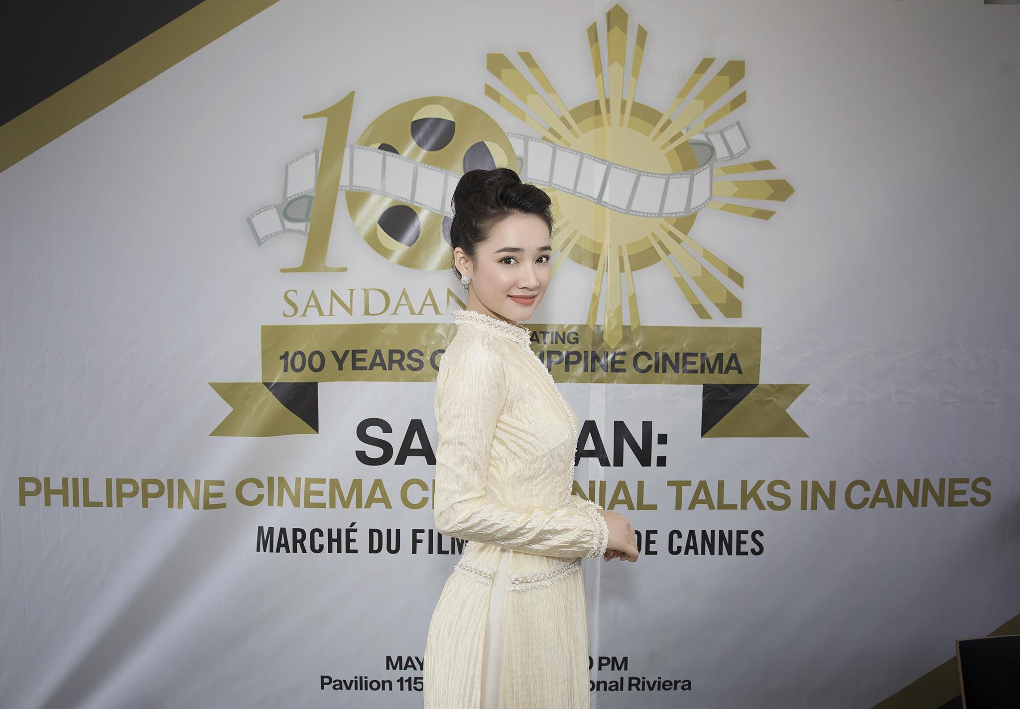 Lựa chọn bộ trang phục màu nude nhã nhặn cho đêm tiệc của điện ảnh Philippines trong khuôn khổ Liên hoan phim Cannes, Nhã Phương thu hút sự chú ý của bạn bè quốc tế với vẻ đẹp nền nã, dịu dàng của người con gái Việt.