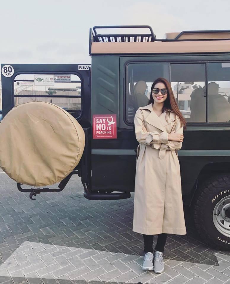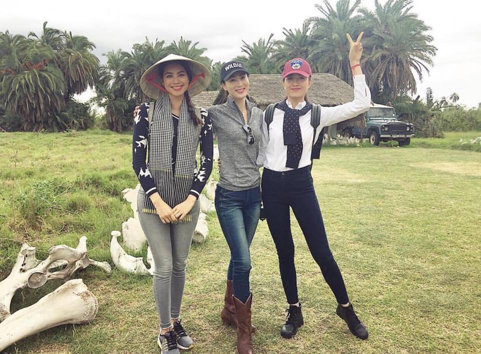 Hoa hậu Phạm Hương giản dị với quần jean, áo thun, nón lá ở đất nước Cộng hòa Kenya.