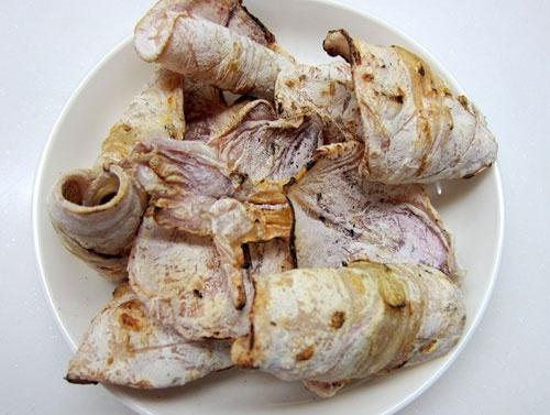 Mực khô ngon có phấn trắng đều trên thân, mực có màu hồng nhạt.