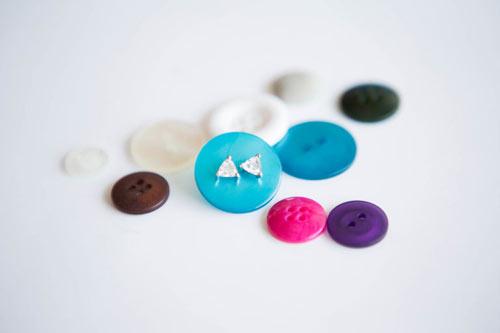 4. Đính hoa tai nhỏ vào nút cúc áo để cất thật gọn gàng và không bị thất lạc trước khi cho chúng vào hộp trang sức.