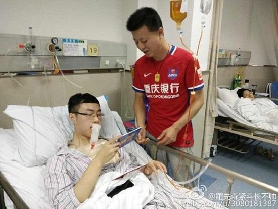 Ngay sau đó, thanh niên họ La đã được một chiếc xe cảnh sát chở tới Bệnh viện Đại học Y Trung Khánh để cấp cứu khẩn cấp. Nhưng sau khi chụp X–quang, anh chàng cổ động viên nói trên lại được chuyển thẳng tới bệnh viện Đại Bình do quá tải bệnh nhân.