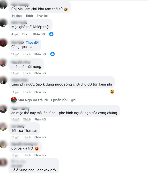 Trước màn lên đồ táo bạo này, hình ảnh Mai Ngô dấy lên nhiều tranh cãi trái chiều. Một số người cho rằng cô ăn mặc quá phản cảm, không phù hợp. Số khác lại cho rằng đây là lễ hội té nước nên mọi người có thể thoải mái lên đồ như ngoài bãi biển.