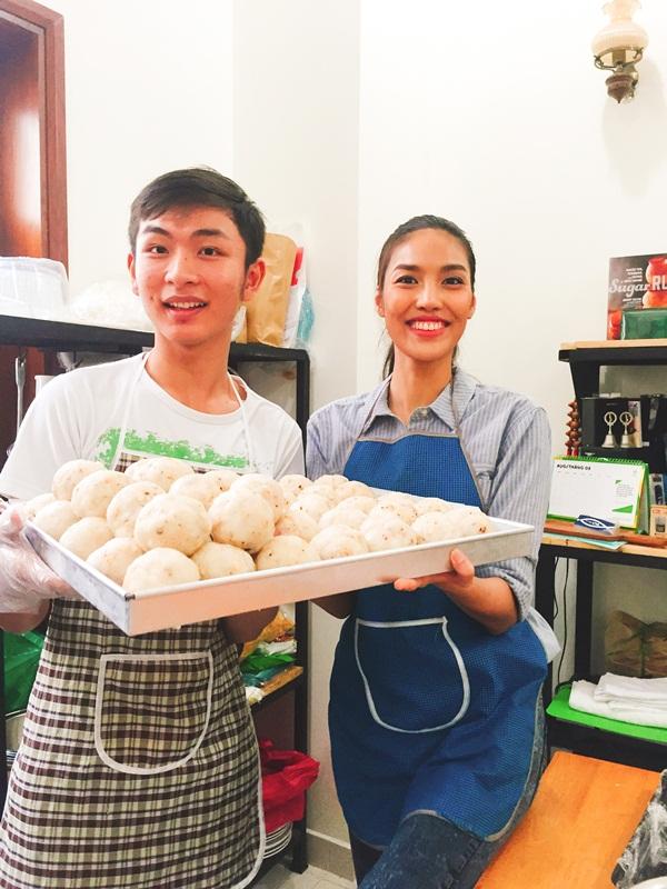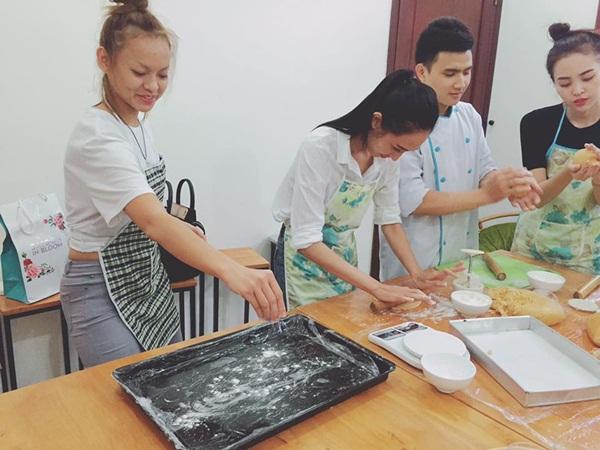 Và cũng rất nhanh hòa nhịp làm bánh cùng các đồng đội
