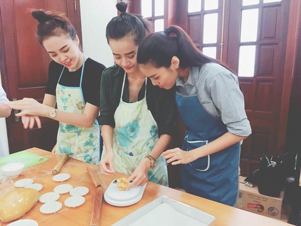 Các cô gái tỏ ra hào hứng khi được tự tay làm bánh để mang tặng