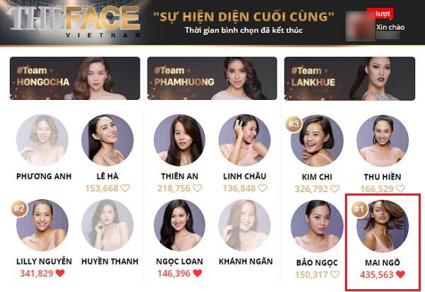 Chiến thắng bảng bình chọn "Sự hiện diện cuối cùng", Mai Ngô của đội huấn luyện viên Lan Khuê bất ngờ tiến thẳng vào đêm chung kết The Face - Gương mặt thương hiệu 2016. Như vậy, đường đua tới ngôi vị quán quân sẽ là cuộc cạnh tranh đầy khốc liệt của 4 ứng cử viên xuất sắc nhất: Khánh Ngân, Chúng Huyền Thanh, Phí Phương Anh và Mai Ngô.