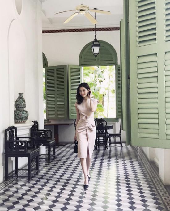 trước các ngôi sao Việt. Cô toát lên diện mạo thanh lịch, ngọt ngào với đầm liền thân