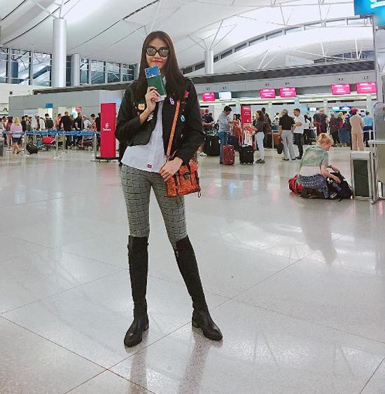 Lan Khuê xuất hiện ở sân bay với phong cách cá tính và độc đáo. Bộ phụ kiện