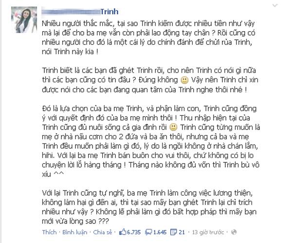 những dòng chia sẻ rất thật lòng trên trang cá nhân của mình.