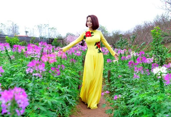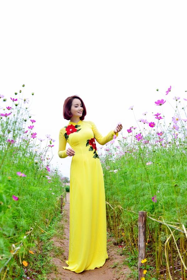 Tà áo dài truyền thống càng góp phần tôn thêm vóc đang hoàn hảo của