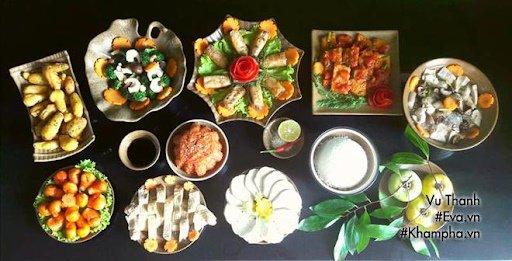 Hay mâm cơm chay của một U40 tự tay làm cúng rằm gồm các món như: Sườn chay sốt chua ngọt, miến nấu mề chay, khoai lang kén, chả nem chay, giò lụa chay, gà hấp chay, tôm chay chiên, tôm chay xào rau củ, xôi gấc.