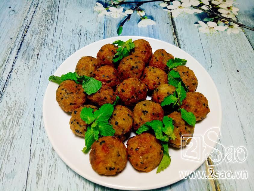 1. Thịt viên chiên mè (400g thịt xay + mè + gia vị = 26k)