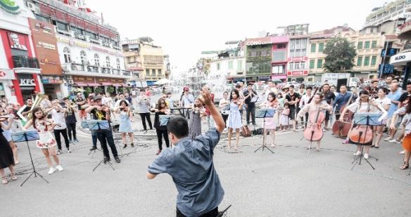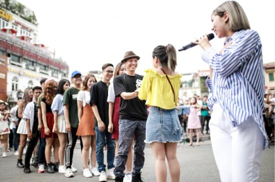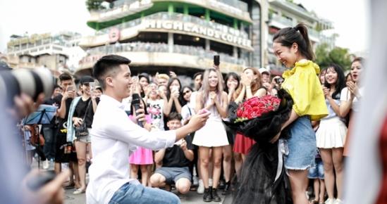 Màn cầu hôn với sự 'hậu thuẫn' của nữ ca sĩ Min làm náo loạn phố đi bộ Hồ Gươm.