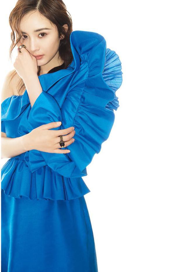 Cũng chỉ cách đây vài ngày, trong bộ ảnh mới đăng trên tạp chí Madame Figaro, nữ diễn viên Trung Quốc Dương Mịch cũng chọn mẫu đầm xanh ấn tượng, tuy nhiên hình ảnh nàng Hoa đán dịu dàng hơn khi chọn đeo nhẫn vintage và làm tóc xoăn nhẹ.