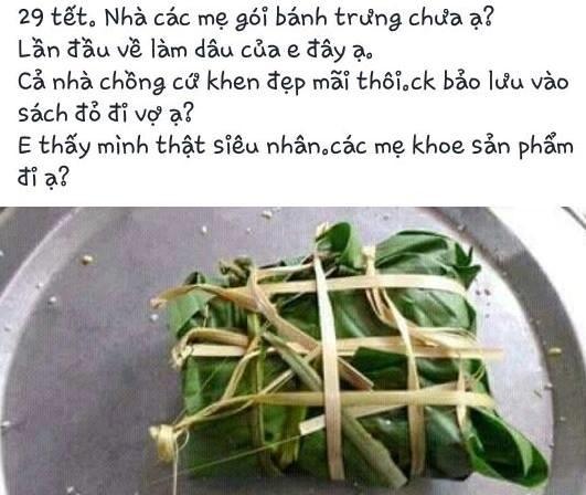 Từ ngày 23 tháng chạp, dân mạng bắt đầu khoe thành phẩm là những chiếc bánh chưng nhà làm, vuông vắn, đẹp mắt. Thế nhưng, bức ảnh thu hút sự chú ý nhất lại là một chiếc bánh chưng được gói cẩu thả, xô lệch.