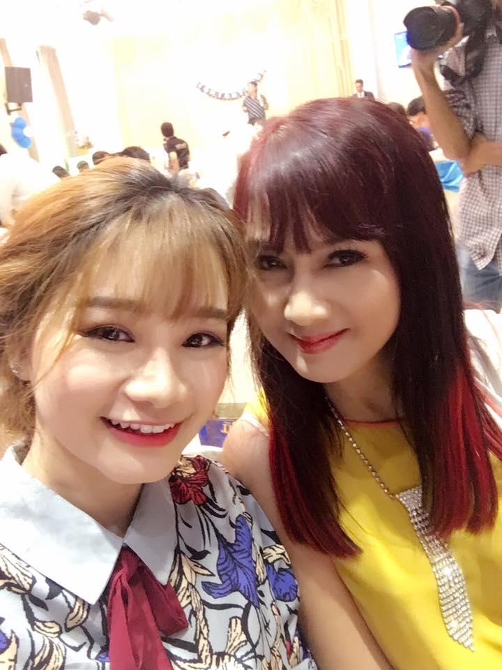 Công việc thường xuyên tiếp xúc với người nổi tiếng nên Huyền khá tự ti về nhan sắc của bản thân. Trong ảnh cô nàng chụp ảnh cùng diễn viên Hiền Mai.