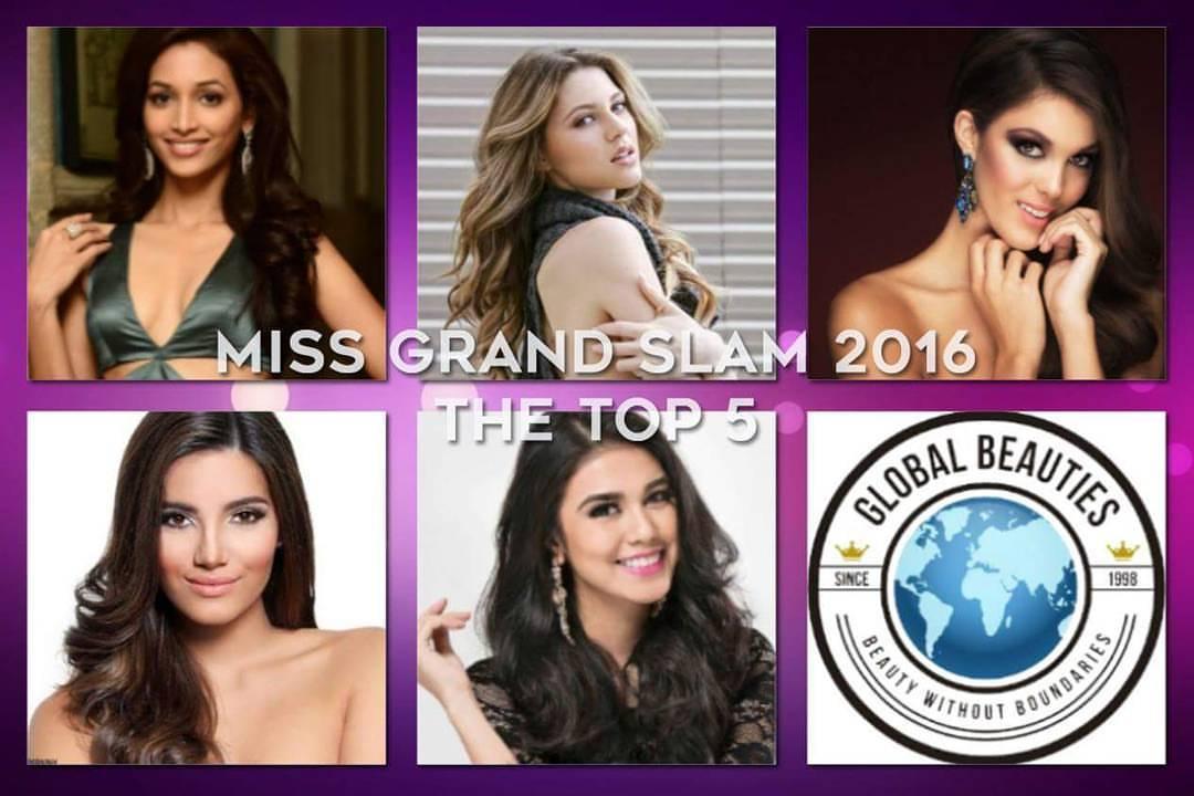 Theo danh sách, 5 gương mặt cuối cùng có cơ hội trở thành Miss Grand Slam 2016 bao gồm: Hoa hậu Thế giới 2016 - Stephanie Del Valle, Hoa hậu hoàn vũ 2016 - Iris Mittenaere, Hoa hậu siêu quốc gia 2016 - Srinidhi Shetty, Hoa hậu Hòa bình Quốc tế 2016 - Ariska Putri Pertiwii và Á hậu 3 Hoa hậu Hòa bình Quốc tế 2016 - Madison Berrios.