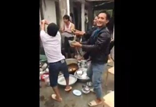 Đoạn clip ngắn ghi lạnh hình ảnh những quý ông lượt là quần áo rửa bát trên nền nhạc sàn được chia sẻ trên nhiều diễn đàn mạng xã hội.