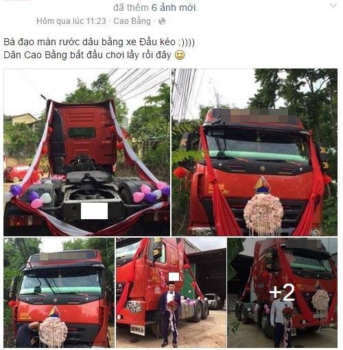 Mới đây, màn đón dâu độc đáo của một cặp đôi ở Cao Bằng thu hút sự chú ý trong cộng đồng mạng. Thay vì xe hoa thông thường, chú rể đã dùng đến hai chiếc xe đầu kéo cỡ lớn để "rước nàng về dinh".